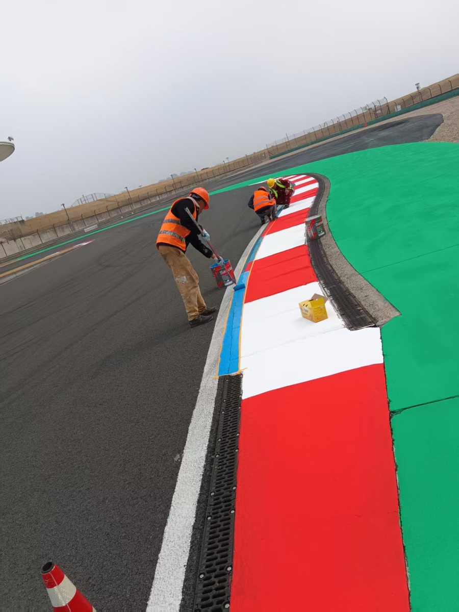 同期,赛谈例行爱戴与维修职责全面完成,结合此前引入的数字3D期间精的确削工艺,赛谈名义平整度达到海外顶级法度。维修区车库则弃取高固体分自流平环氧树脂地坪体系,通过全面检测与系统性建造,打造高耐磨、抗腐蚀、易清洁的专科功课环境,为车队技师的高强度赛事保险提供复旧。