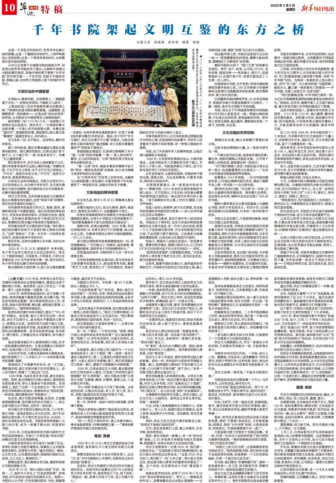 从庐山五老峰下白鹿洞书院的琅琅书声,到武夷山间考亭书院的朱子遗凮;从朝鲜半岛陶山书院的儒风绵延,到地中海畔那不勒斯“中华书院”的中西会通……千百年间,起原于中国的书院,普及山海,辞寰球漂后领土上留住长远的中华钤记。